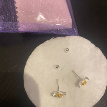 These studs have quickly become a staple in my jewelry collection. They're small and delicate, but still manage to make a statement with their unique flower design. Plus, the quality of the silver has exceeded my expectations - no signs of tarnishing or wear even after weeks of constant use.